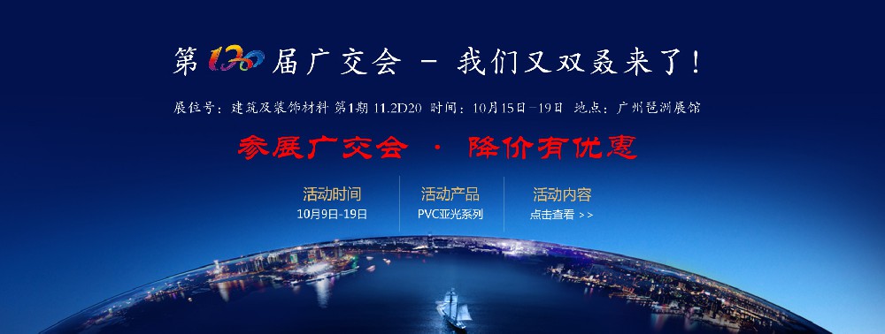 為了傾情回饋國內(nèi)外新老客戶,公司臨時決定,在廣交會展前及展中期間對PVC瑪瑙膜,PVC冰花膜等PVC亞光系列產(chǎn)品進行降價促銷活動,活動期間訂購均可享受以下價格優(yōu)惠: